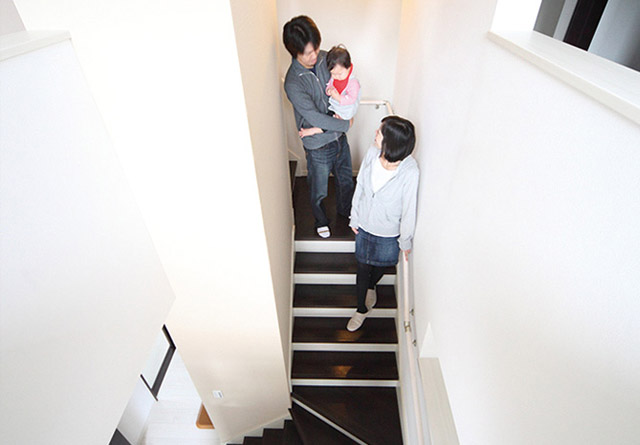 数年前に結婚し、昨年は娘が誕生。家族構成が変わったのを機に、一階は親世帯、二階は我々子世帯の二世帯住宅を新築しました。内階段でつながっていますが、水回りやリビングは各階に作りました。とくにリビングはそれぞれ特徴があります。