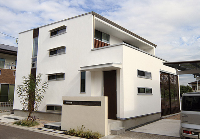 新築に対する一番の希望は、太陽光を採り入れた明るい住まい。でも窓を大きく取ると道路からの視線が気になるので、窓に格子を入れ、光はそのままに視線だけ遮る工夫をしてもらいました。曇りでも十分明るく、満足しています。