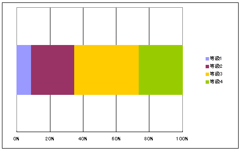 等級4 評価対象住戸において発生した火災のうち、すべての台所及び居室で発生した火災を早期に感知し、住戸全域にわたり警報を発するための装置が設置されている 等級3 評価対象住戸において発生した火災のうち、すべての台所及び居室で発生した火災を早期に感知し、当該室付近に警報を発するための装置が設置されている 等級2 評価対象住戸において発生した火災のうち、すべての台所及び寝室等で発生した火災を感知し、当該室付近に警報を発するための装置が設置されている 等級1 評価対象住戸において発生した火災のうち、すべての寝室等で発生した火災を感知し、当該室付近に警報を発するための装置が設置されている 等級1 等級2 等級3 等級4 合計 戸数 4,540 13,269 19,946 13,706 51,461 % 8.8% 25.8% 38.8% 26.6% 100.0%