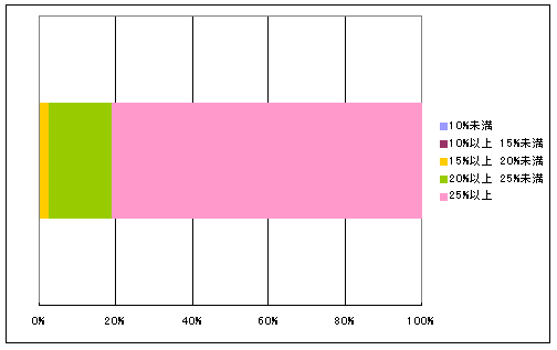 25%未満25%以上 合計 戸数 9 207 1,087 8,483 41,664 51,450 % 0.0% 0.4% 2.1% 16.5% 81.0% 100.0%