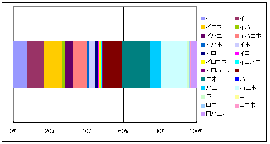 | イロ | イロニ | イロニホ | イロハニ | イロハニホ | ニ | ニホ | ハ | |