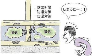 住宅に使われている材料は、時間が経過するにつれて、水分・湿気や大気中の汚染物質などの影響を受けて、腐る、錆びるなど、劣化します。