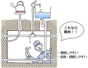 例)分解可能な排水管の使用や新しい排水管の設置スペースをあらかじめ設けておくなど
