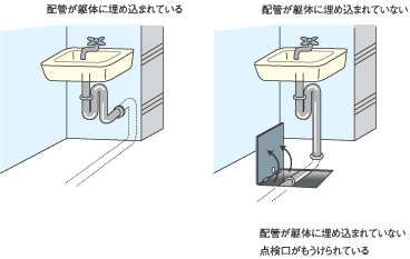 例)配管が、貫通部を除き、コンクリートに埋め込まれていないこと - b.躯体も仕上げ材も傷めないで点検、清掃を行うための対策