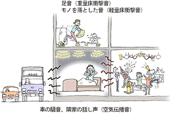 住宅では、同一建物内の隣戸の話し声や上階の足音が伝わってくることで、非常に不快に感ずることがあります。特に、子供の飛び跳ね音や走りまわり音がクレームの原因となるケースが多くなっています。